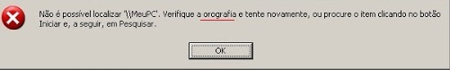 Como podemos ver o Bloco de Notas exibe uma mensagem de erro indicando que o arquivo cujo nome você digitou não existe, pede para você "verificar a orografia" e tudo o mais. O importante aqui não é que você não sabe digitar nomes de arquivos, mas sim qual a função que o notepad usa para exibir sua mensagem de erro.