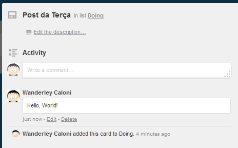 Por fim, para fazer o código que irá comentar dentro de um card no Trello, basta usar dois ou três métodos que lidam com enviar coisas pela web (não me pergunte mais que isso):