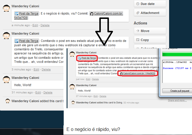 Agora é só testar. Posso pegar esse mesmo artigo e comitá-lo no repositório do meu blogue usando o linque único do card da tarefa de escrever este artigo. Ou seja, aqui é Inception na veia, mermão!
