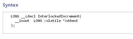O exemplo clássico da API Win32 é o InterlockedIncrement, que realiza operações atômicas em valores inteiros. Para fazer isso é necessário usar um recurso interno disponível pelo processador que irá modificar a memória sem intrusão de outras threads/processadores.