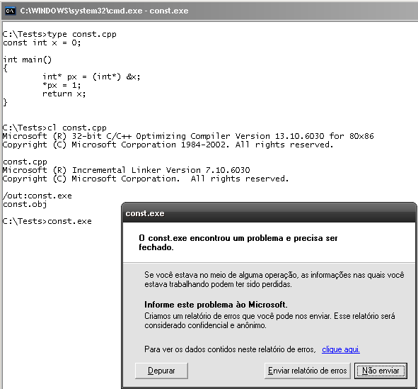 Uma variável const não pode ser alterada pelo programa durante sua execução, apenas durante sua inicialização: