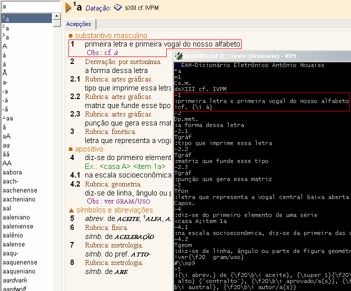 A partir dessas duas funções é possível dissecar o primeiro arquivo do dicionário, e assim, construirmos a primeira versão interessante do Houaiss no Babylon.
