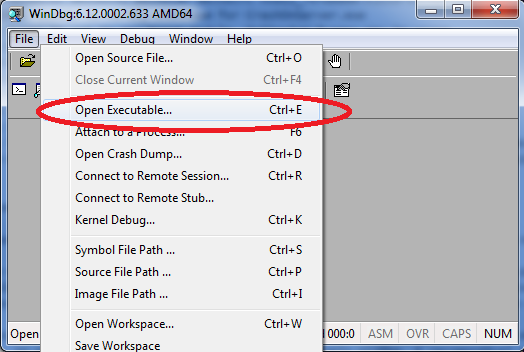 Por último, execute o seguinte na tela de comandos do WinDbg: