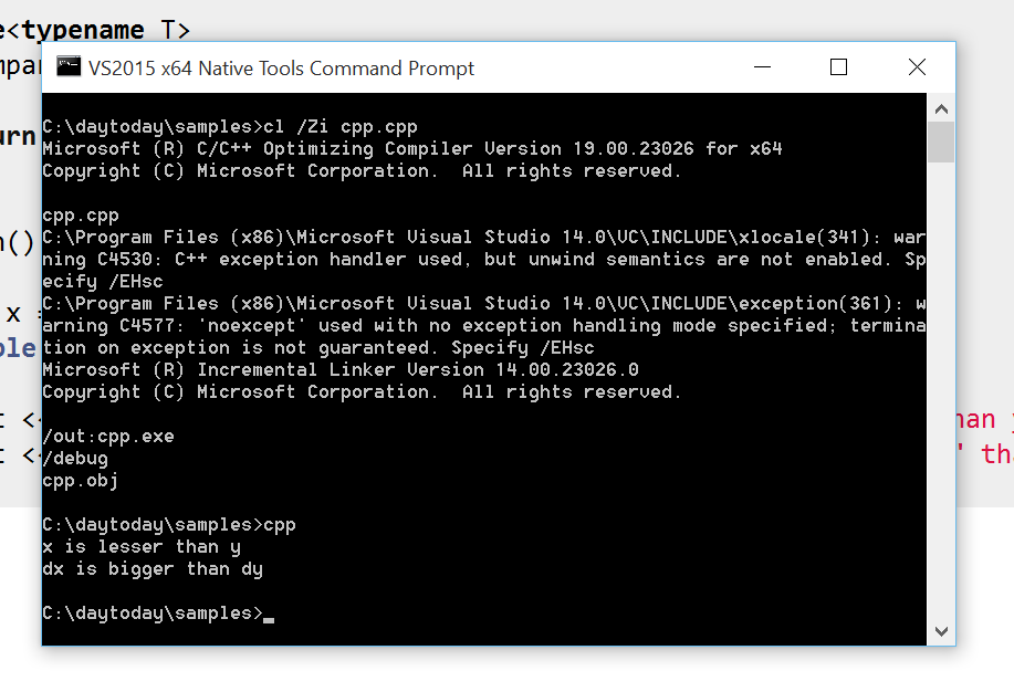 cout << "dx is " << ( Compare(dx, dy) ? "lesser" : "bigger" ) << " than dy\n";