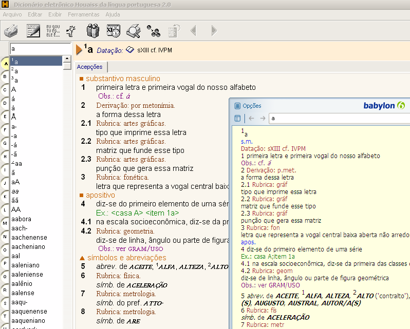 2008-04-08 computer projects blog Após algumas semanas de suspense, chegamos finalmente à nossa segunda e última parte da saga do dicionário Houaiss. Como devem [estar lembrados], a primeira parte se dispôs a desmontar a ofuscação usada nos arquivos do dicionário para permitir nossa posterior análise, com o simples e justo objetivo de importá-lo para o Babylon, cujas funcionalidades de busca são bem superiores.