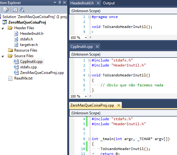 2012-03-27 computer blog O Visual Studio é uma ótima ferramenta para depurar rapidamente programas sendo desenvolvidos e ~~para editar vários arquivos ao mesmo tempo~~ para o resto usamos Vim. No entanto, a versão 2010 do ambiente (ainda não testei a 2011 beta) possui um pequeno deslize com sua árvore de dependências que não chega a prejudicar o desenvolvedor, mas o deixa com um bug atrás da orelha.