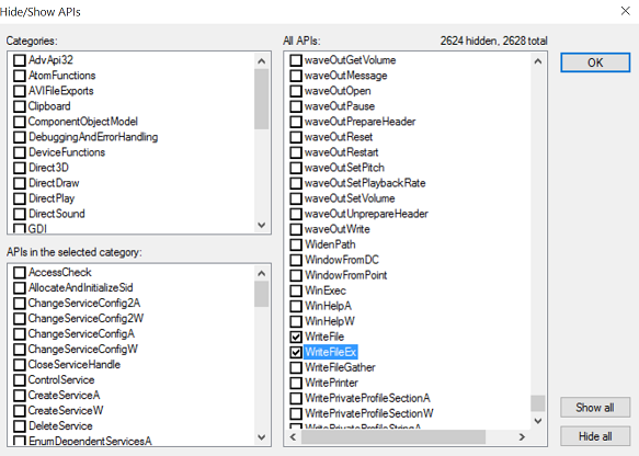 Para evitar procurar em dezenas de milhares de chamadas, há uma opção de filtrar com apenas o que queremos (no caso, CreateFile e WriteFile):