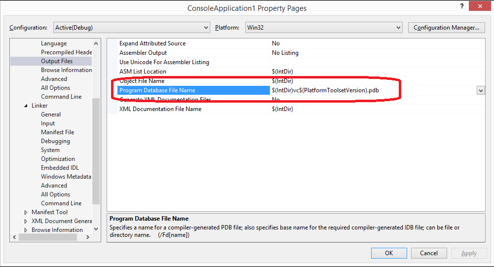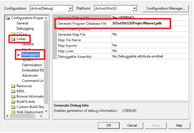 E eis que alguém, muito provavelmente eu mesmo, naquele momento de inspiração, criei a seguinte configuração para a geração dos PDBs, os símbolos para depurar programas no Windows: