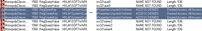 MonopolyClassic.exe CreateFile C:\Documents and ...\TikGames\Monopoly NAME COLLISION MonopolyClassic.exe CreateFile C:\Arquivos de programas\GameHouse\Monopoly Classic\Monopoly.log ACCESS DENIED MonopolyClassic.exe QueryOpen C:\Arquivos de programas\GameHouse\Monopoly Classic\DBGHELP.DLL NAME NOT FOUND MonopolyClassic.exe RegOpenKey HKLM\Software\Microsoft\...\DBGHELP.DLL NAME NOT FOUND