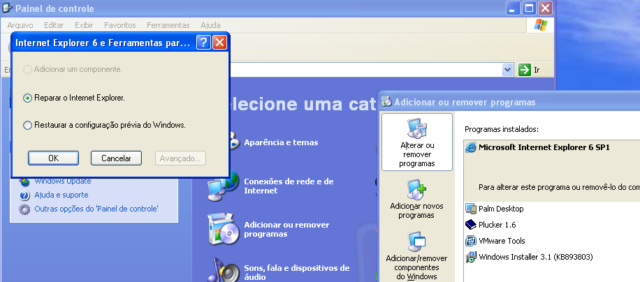 O problema consistia basicamente em usar a saída do RegMon para identificar e restaurar algumas modificações que danificavam a instalação do Internet Explorer. O sistema de reparo do IE não existia no cliente, pois ele estava sem Service Pack (bem-vindo ao mundo real), mas podíamos nos guiar através dele na nossa máquina virtual para saber o que faríamos. O estrago era feito durante o registro e/ou desregistro de um componente COM.