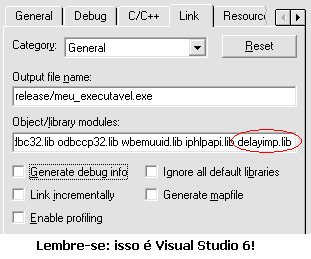 Isso, é claro, depois de ter checado e rechecado a existência da LIB de Delay Load na lista de LIBs a serem lincadas: