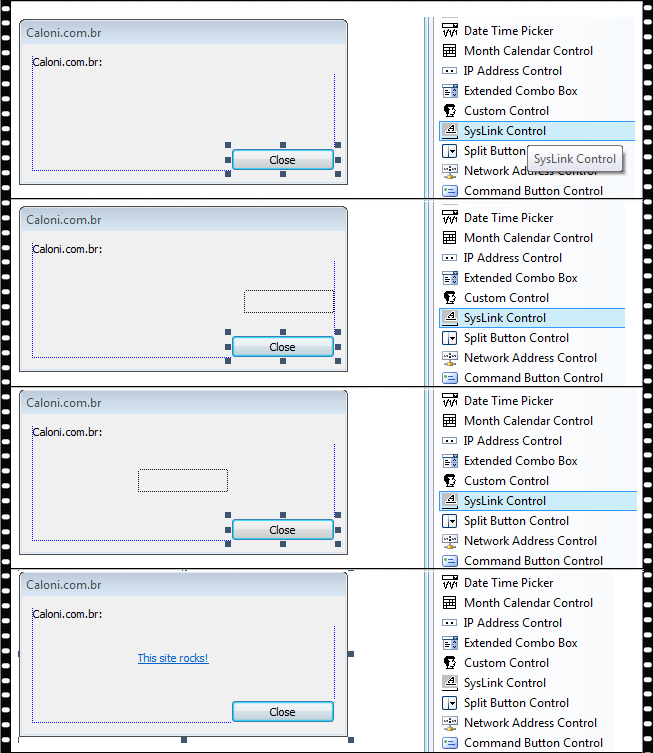Na verdade, não fiz tanto, mesmo. Muitas mensagens do Outlook, gráficos UML e reuniões de alinhamento depois, sobrou um tempinho pra programar. Aprendi algumas coisas que tinha o desejo de saber há tanto tempo... Agora eu sei, quem diria, criar linques suspensos nas janelas Win32! Que novidade, não? Pois é, isso exige, de acordo com o SDK, algumas artimanhas pra fazer funcionar. Para quem está de Visual Studio 2008/2010 na mão basta seguir os passos seguintes.