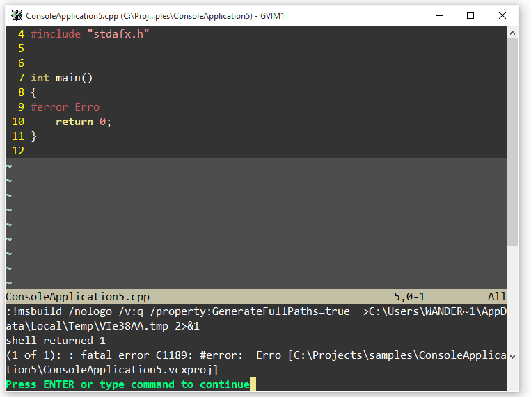 Done Building Project "C:\Projects\samples\ConsoleApplication5\ConsoleApplication5.sln" (default targets).