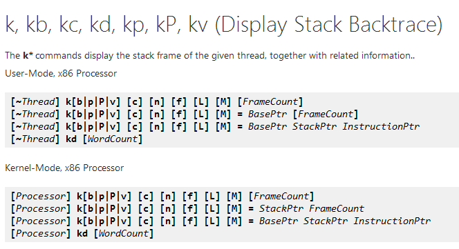 Com os dados disponíveis nos objetos de contexto (no exemplo do main, a variável source) é possível pelo Windbg analisar qualquer tipo de stack com o comando **k**.