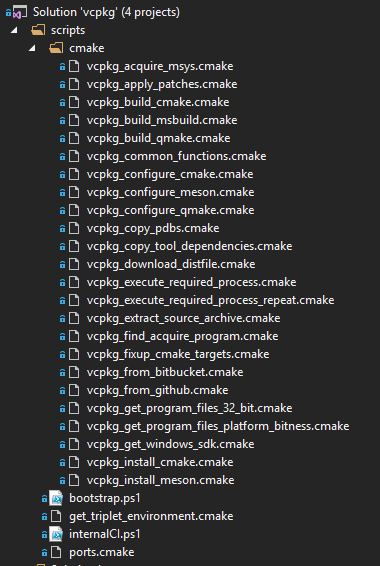 O arquivo vcpkg\installed\vcpkg\status contém em formato texto simples o status de todos os pacotes instalados (se foi instalado com sucesso ou não, etc). A pasta vcpkg\ports contém todos os pacotes, instalados ou não. O início de tudo é o executável na pasta-raiz após compilado, vcpkg.exe, feito em C++ e que realiza todas as bruxarias para montar a hierarquia de pastas e arquivos em texto. Tudo é tão simples e baseado em arquivos de texto que vejo que a M$ finalmente se rendeu ao jeito unix de fazer as coisas (mais conhecido como o jeito certo).