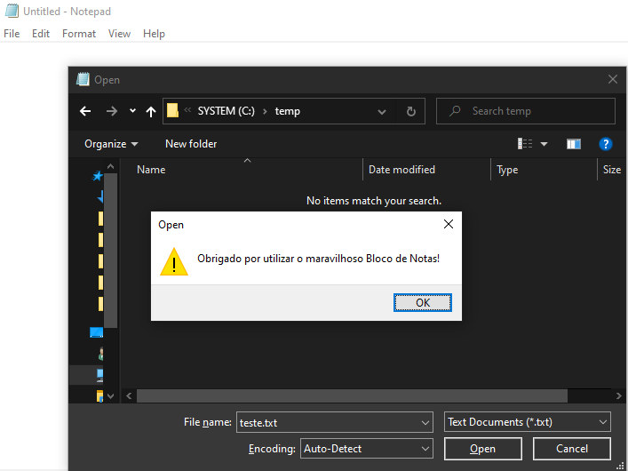 Brincando com o WinDbg (alterando mensagem de erro no Bloco de Notas / Notepad)