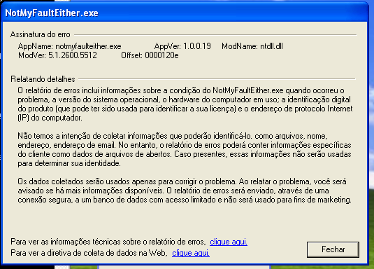 2007-07-20 blog projects computer Um depurador utiliza breakpoints para "paralisar" momentaneamente a execução do programa sendo depurado. Para isso ele se utiliza de uma bem conhecida instrução conhecida como int 3. Essa instrução gera uma exceção -- exceção de breakpoint -- que é capturada pelo sistema operacional e repassada para o código de tratamento dessa exceção. Em programas sendo depurados esse código está localizado no depurador. Em programas "livres" esse código normalmente não existe e ao acontecer essa exceção o aplicativo simplesmente "capota".